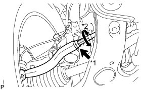(b) Remove the 2 nuts on the lower side of the front shock absorber.