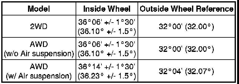 (b) Turn the steering wheel to the left and right full lock positions, and measure the turning angle.