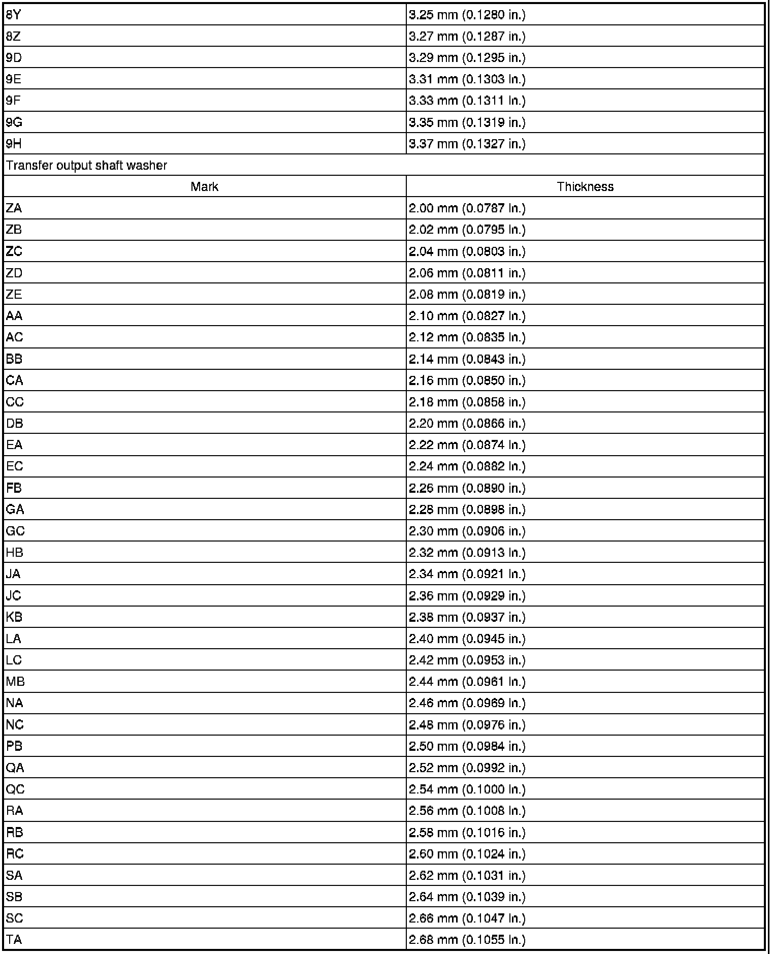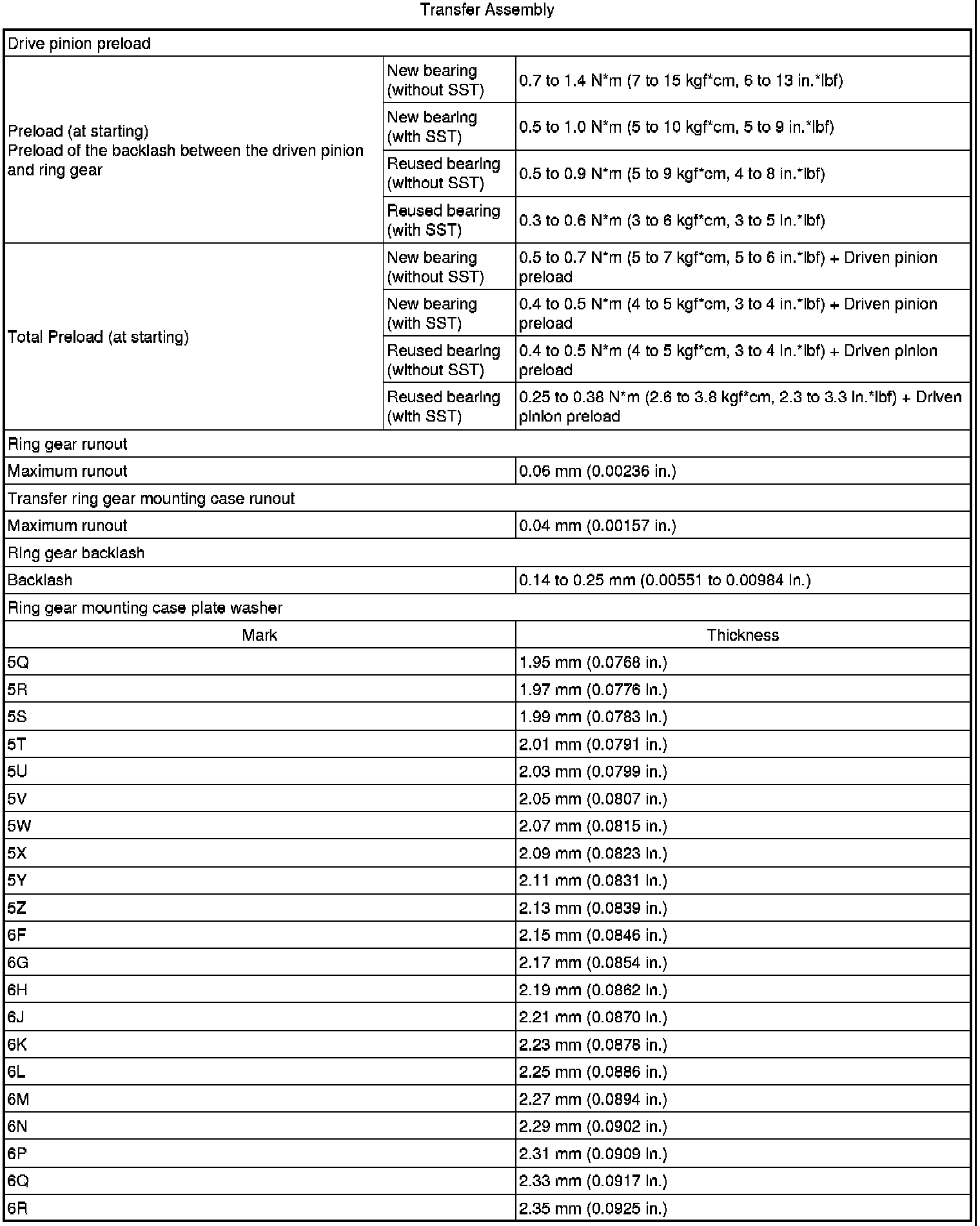 SPECIFICATIONS: MF1A TRANSFER / 4WD / AWD: SERVICE DATA