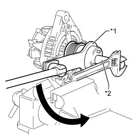 (f) Loosen the pulley by turning SST (B) in the direction shown in the illustration.