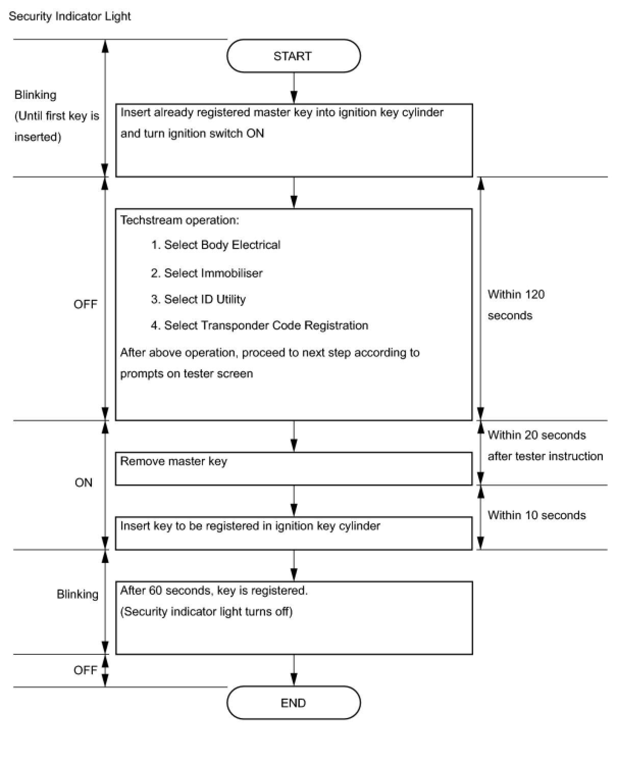 (1) Turn the ignition switch ON and OFF 5 times within 10 seconds using the already registered master key.