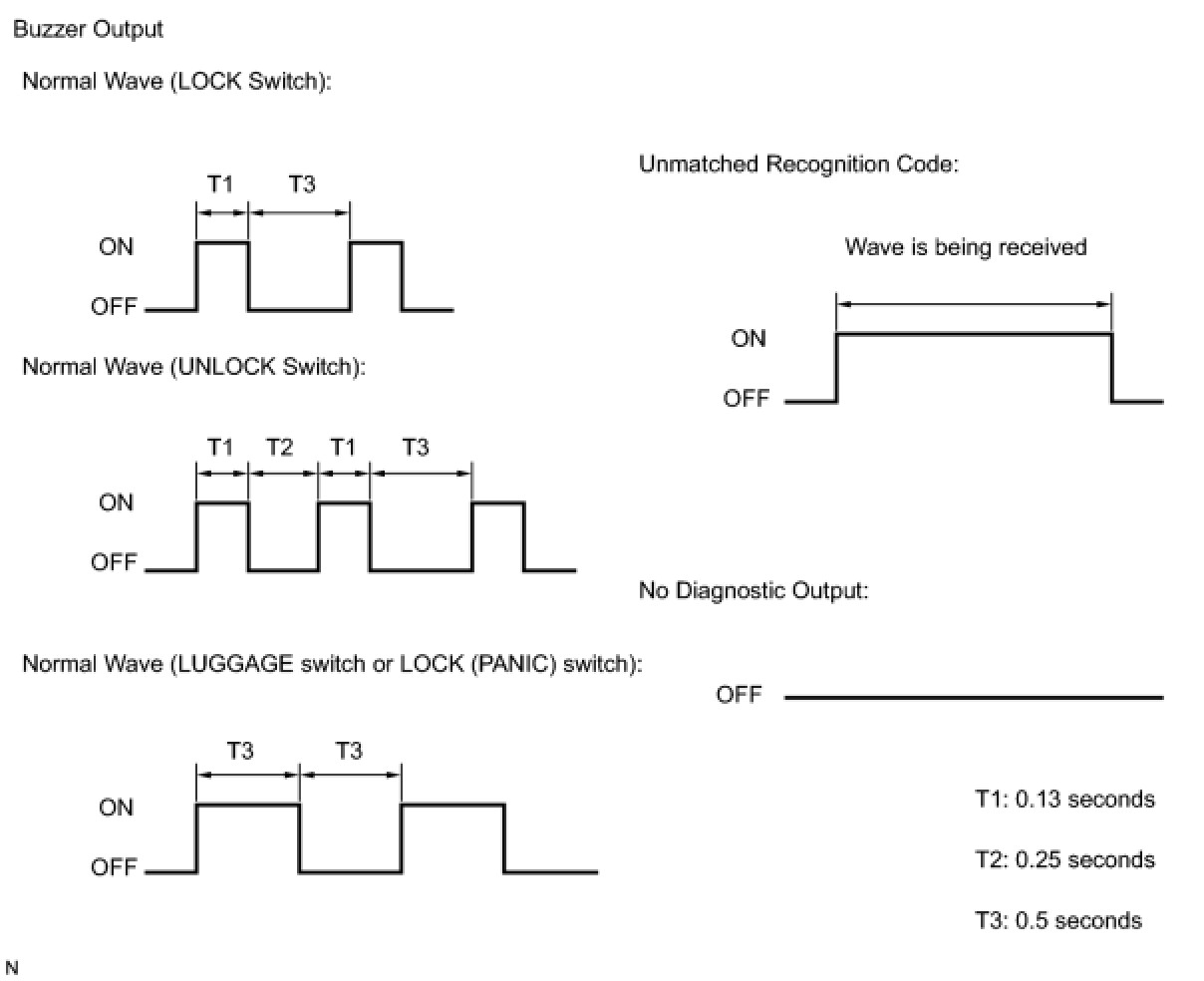 (c) Check that the system has switched to self-diagnostic mode by checking the wireless door lock buzzer sound. Compare the buzzer sound to the illustration.
