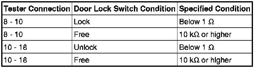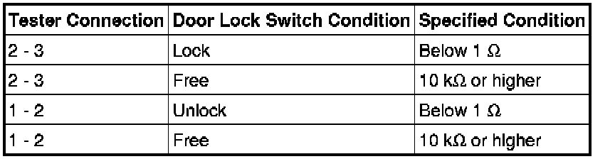 DOOR LOCK: DOOR CONTROL SWITCH: INSPECTION