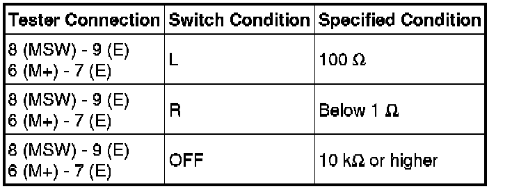 MIRROR: OUTER MIRROR SWITCH: INSPECTION
