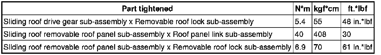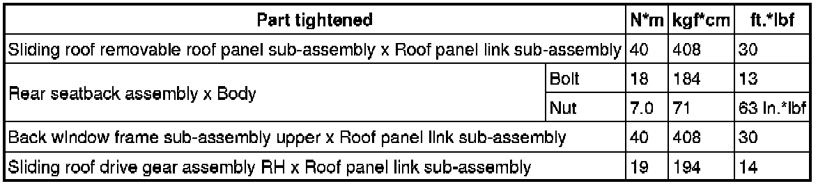 SERVICE SPECIFICATIONS: CONVERTIBLE: TORQUE SPECIFICATIONS