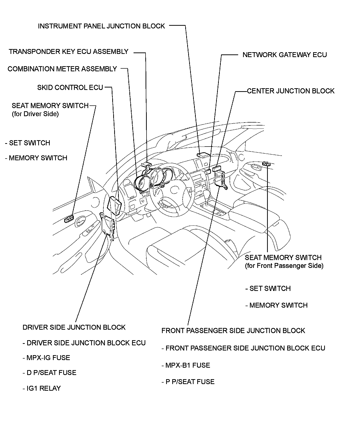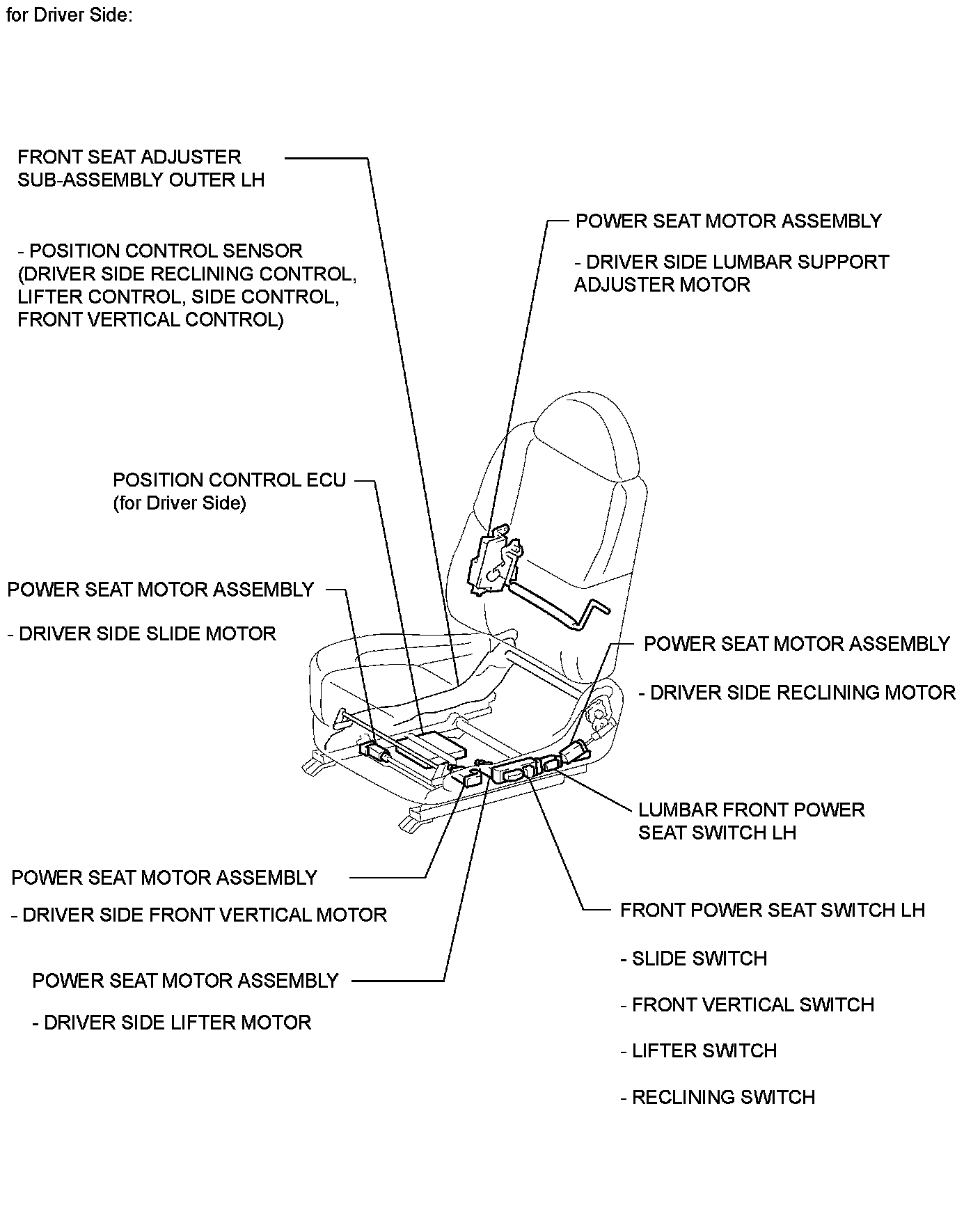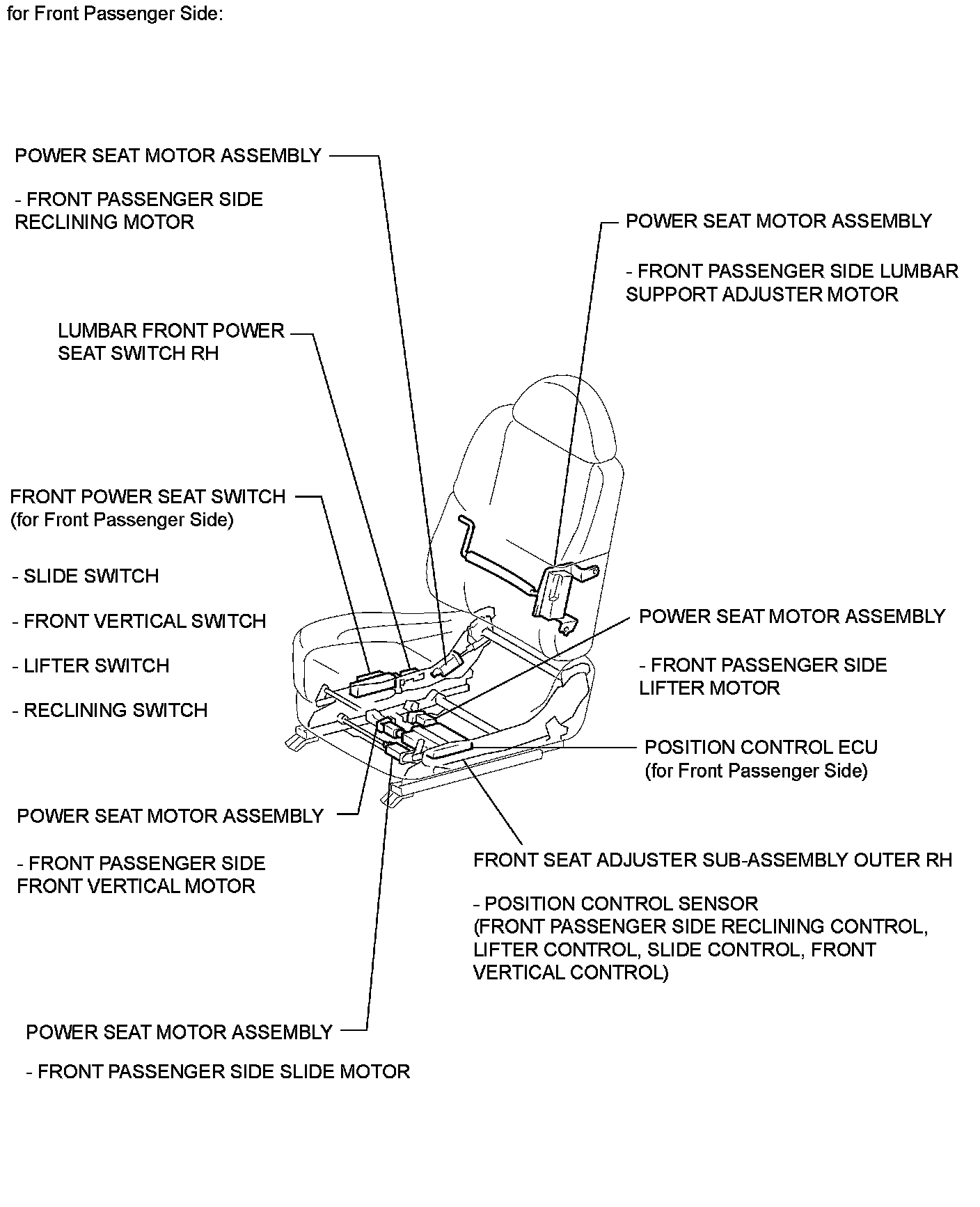 SEAT: FRONT POWER SEAT CONTROL SYSTEM: PARTS LOCATION