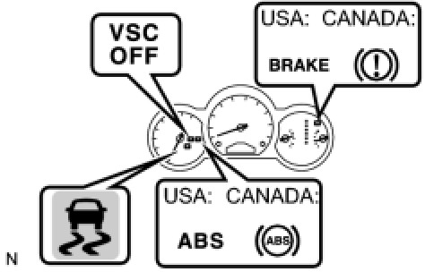 * If the ECU stores a DTC, the ABS warning light and VSC OFF indicator light illuminate.
