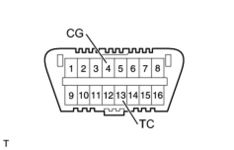 (1) Using SST, connect terminals 13 (TC) and 4 (CG) of the DLC3.