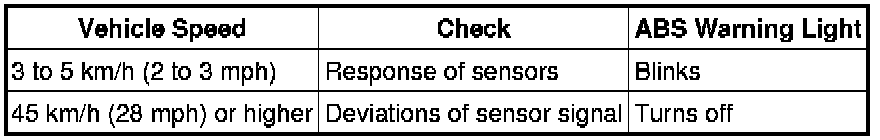 (1) Drive the vehicle straight forward at the following speeds. Then check the ABS warning light.