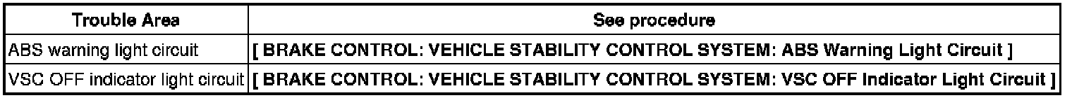 If the ABS warning light and VSC OFF indicator light do not blink, check the ABS warning light circuit and VSC OFF indicator light circuit.