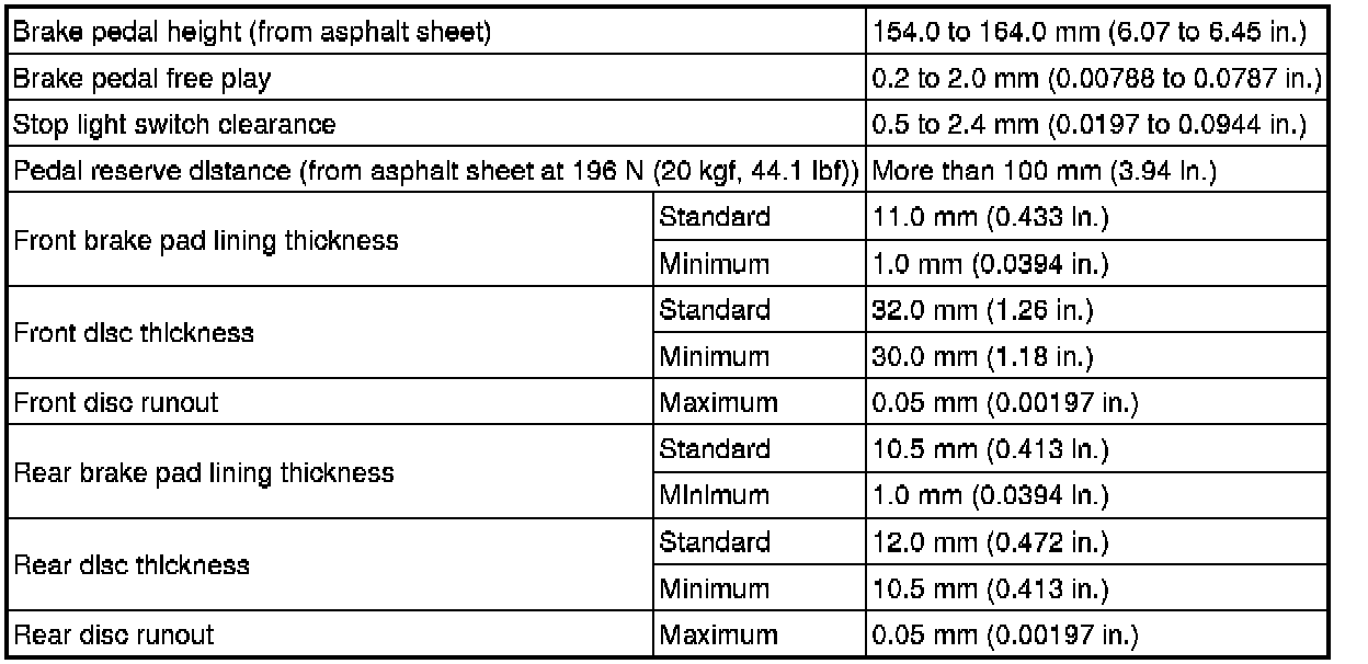 SERVICE SPECIFICATIONS: BRAKE: SERVICE DATA