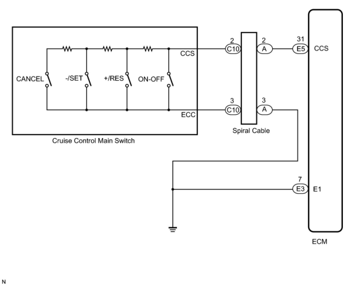 This circuit sends signals to the ECM depending on the cruise control main switch condition.