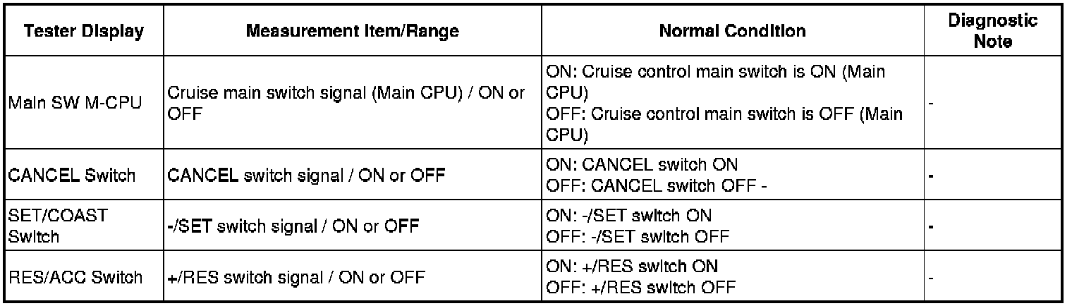 (a) Check the Data List for proper functioning of the cruise control main switch.