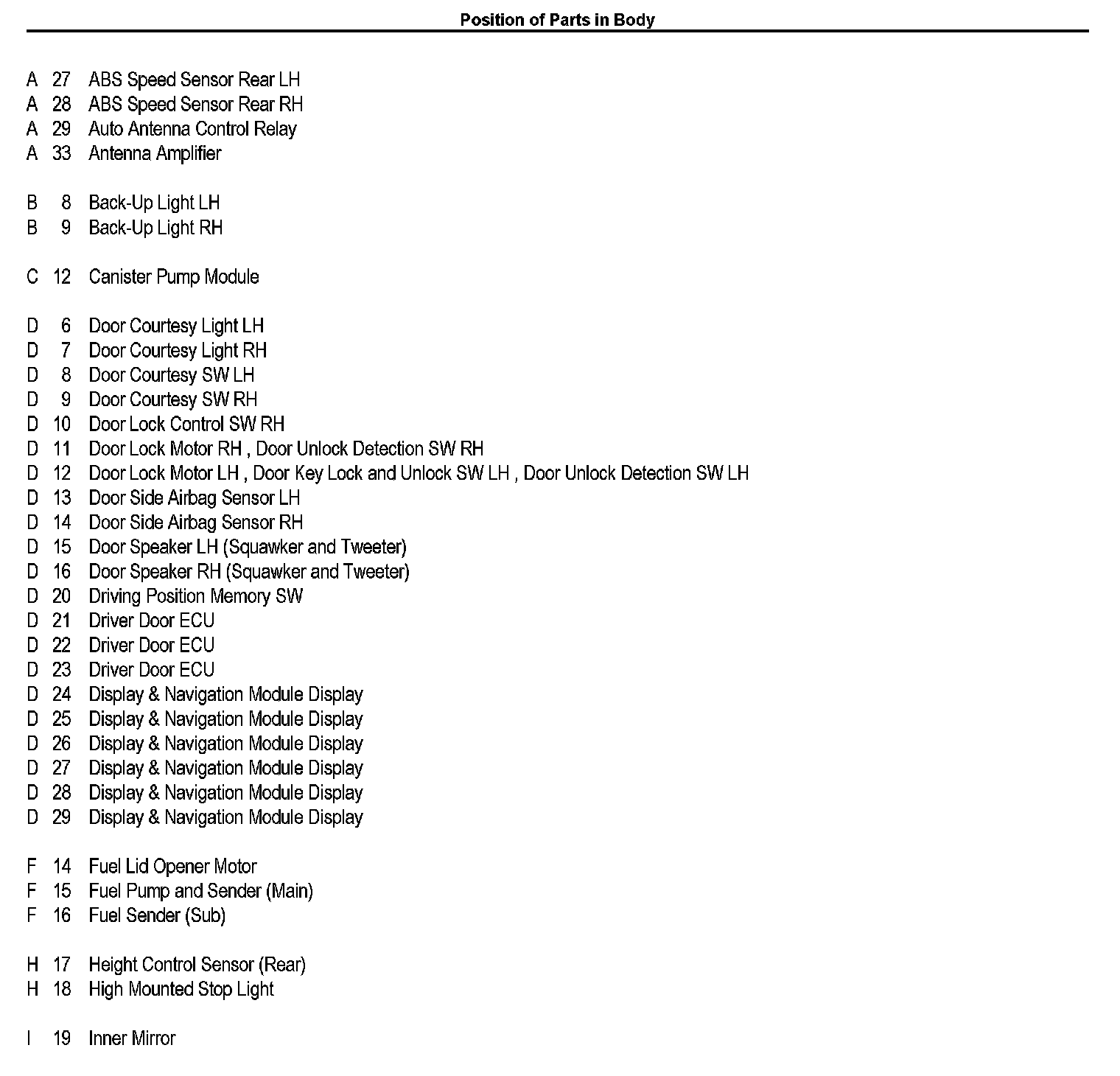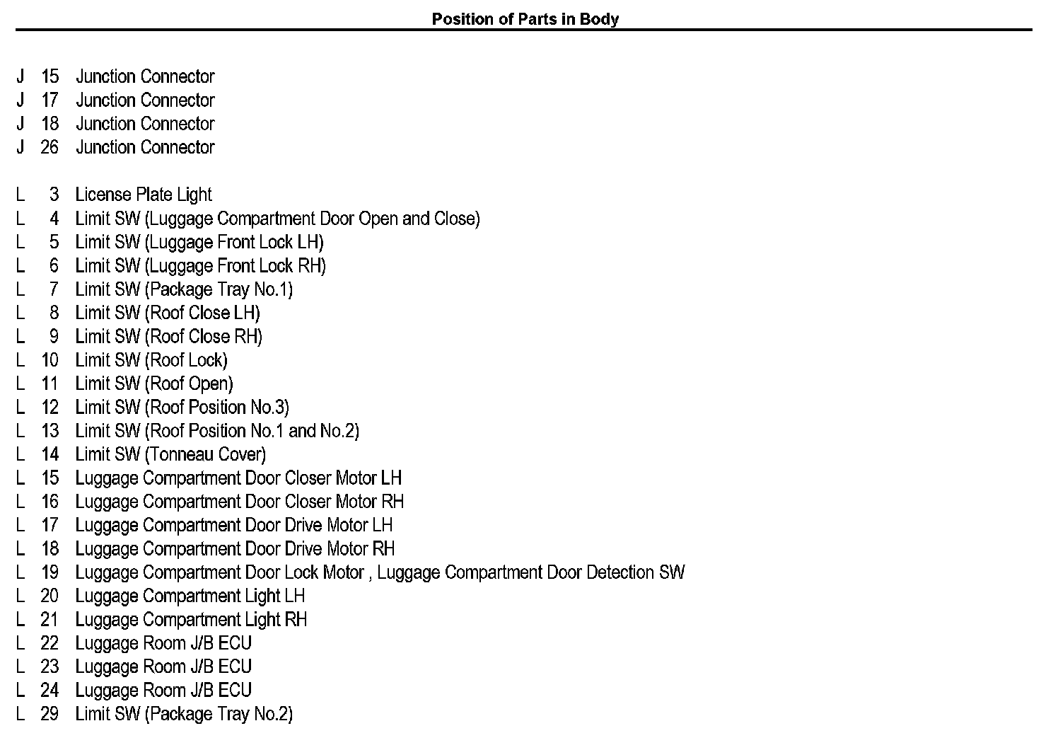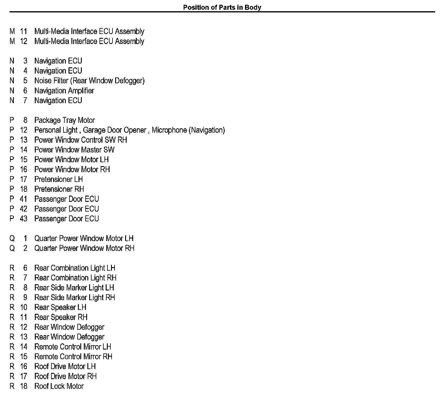 Position of Parts In Body