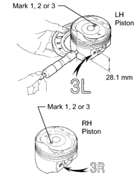 * The shape of the piston varies for the LH and RH banks. The LH piston is marked with a "3L" and the RH piston is marked with a "3R".