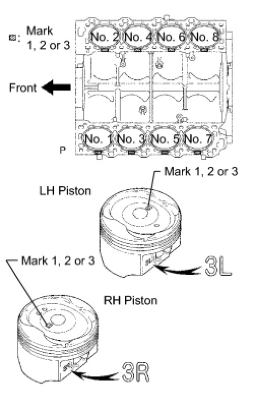 * Use a piston with the same number mark as the cylinder diameter marked on the cylinder block.