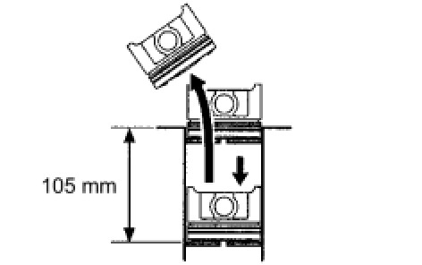 (2) Using a piston, push the piston ring a little beyond the bottom of the ring travel 105 mm (4.13 in.) from the top of the cylinder block.