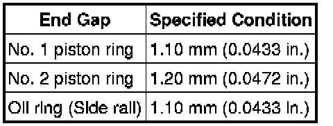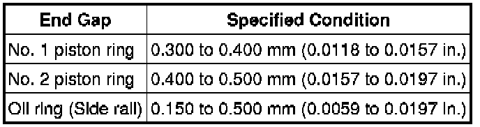 (3) If the end gap is greater than the maximum, replace the piston ring. If the end gap is greater than the maximum even with a new piston ring, replace the cylinder block.