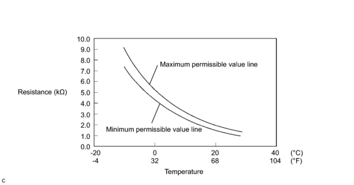 (b) Check that the resistance is between the table's "maximum permissible value line" and "minimum permissible value line" for each temperature.