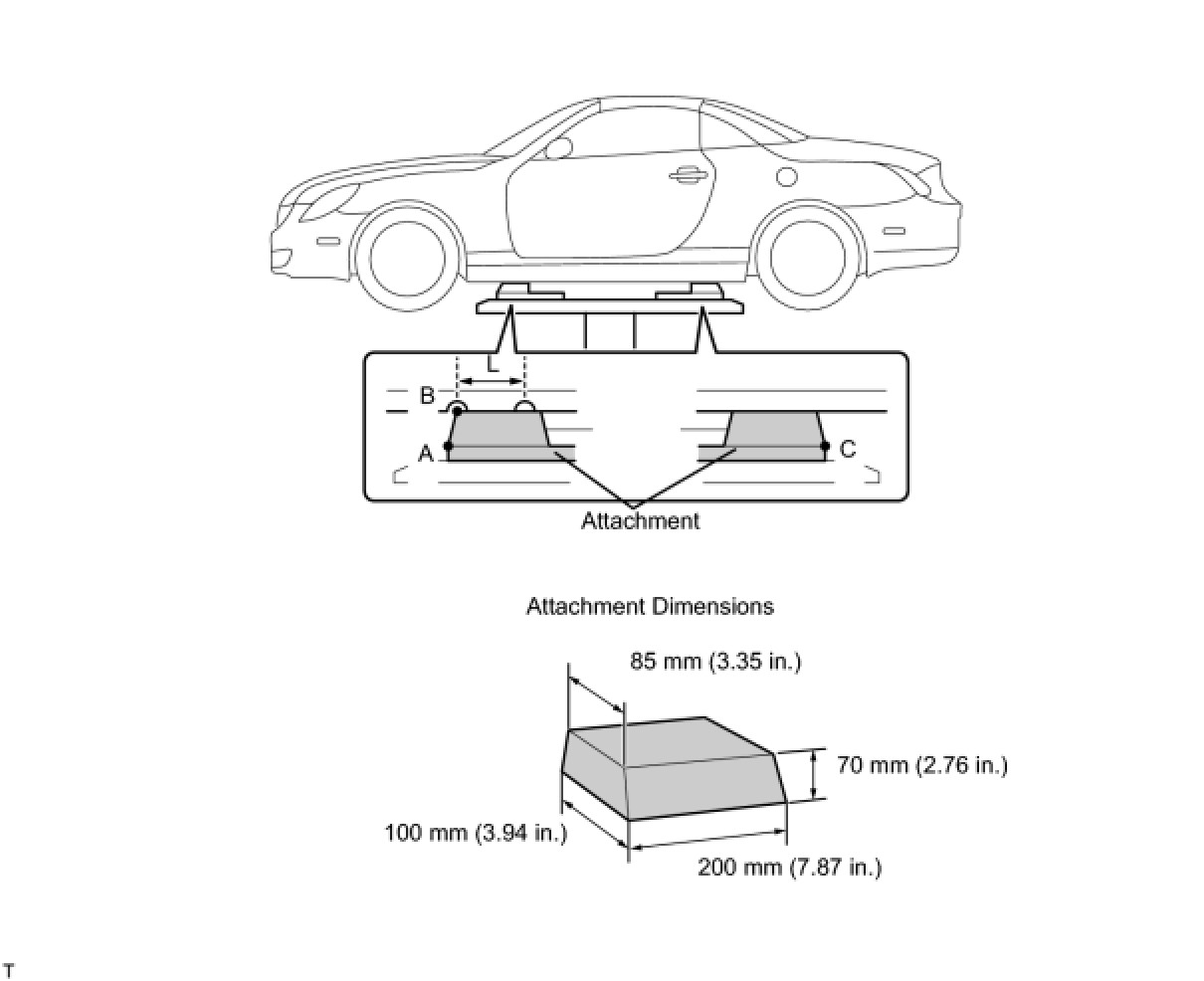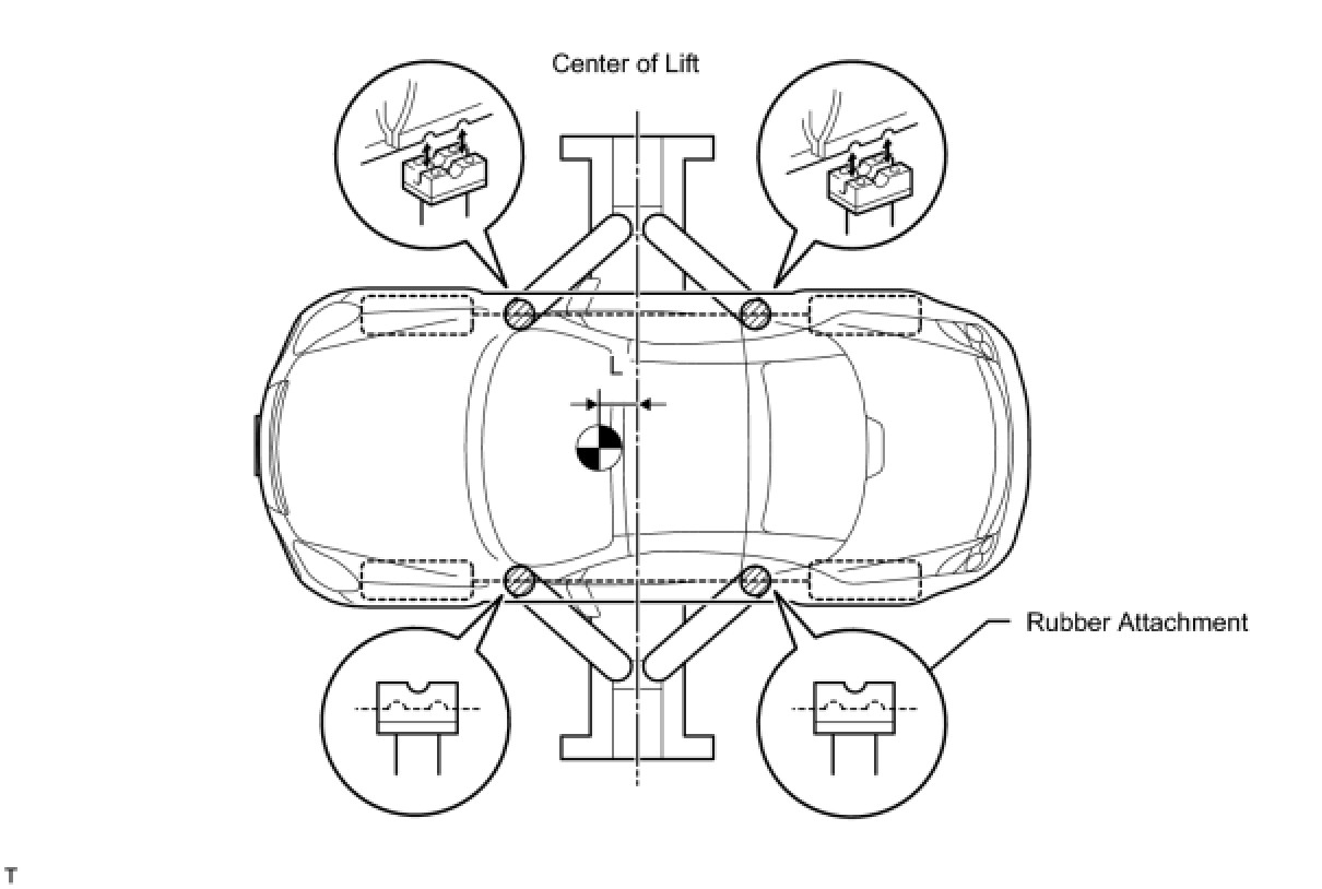 (d) When using the lift, its center should be as close to the vehicle's center of gravity as possible (length of "L" in the illustration should be as short as possible).