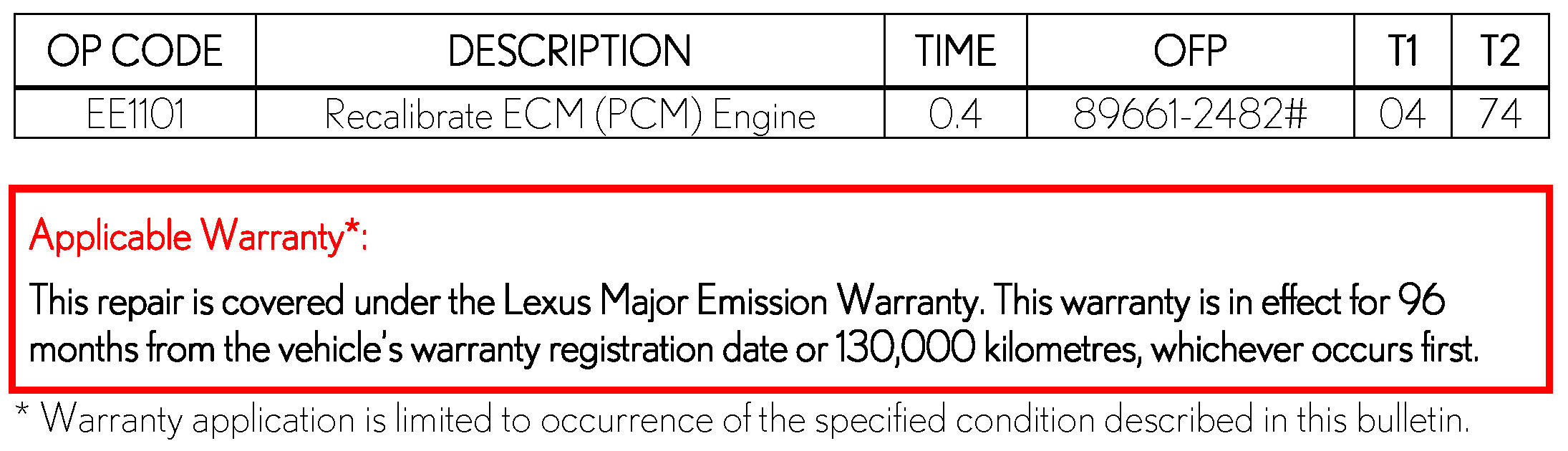 Follow the procedures outlined in TSB2401, "Techstream ECU Flash Reprogramming Procedure", and flash the ECM (PCM) with the NEW calibration file update.