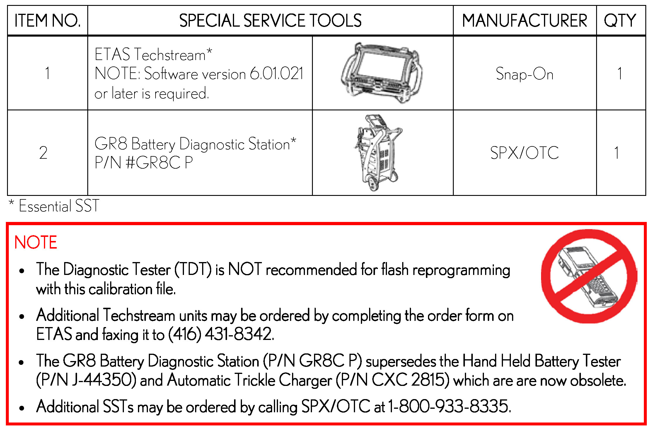 - For details on how to use the GR8 Battery Diagnostic Station, refer to the GR8 Battery Diagnostic Station Instruction Manual located on ETAS/TIS library > Tools > tools and equipment > GR8 Battery Diagnostic Station Instruction Manual.