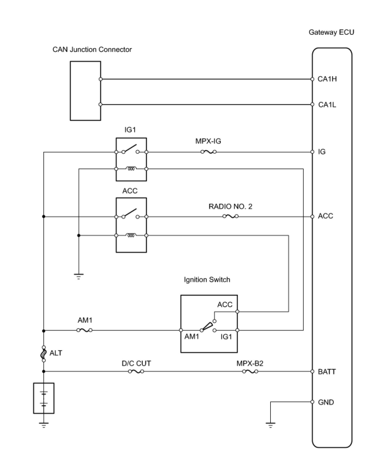 2. CHECK WIRE HARNESS (GATEWAY ECU - BATTERY AND BODY GROUND)