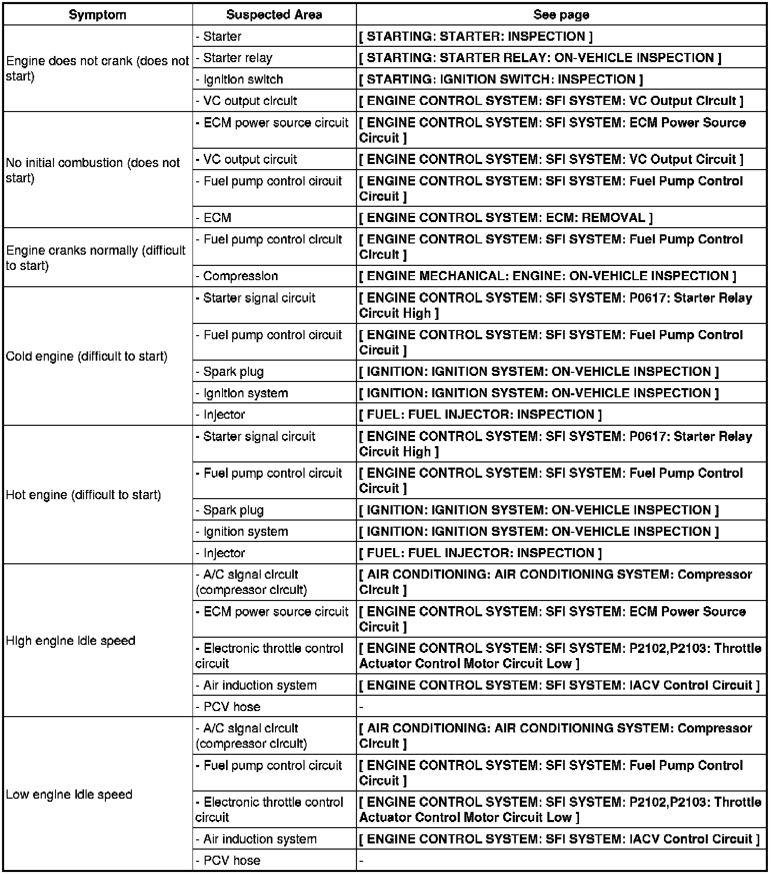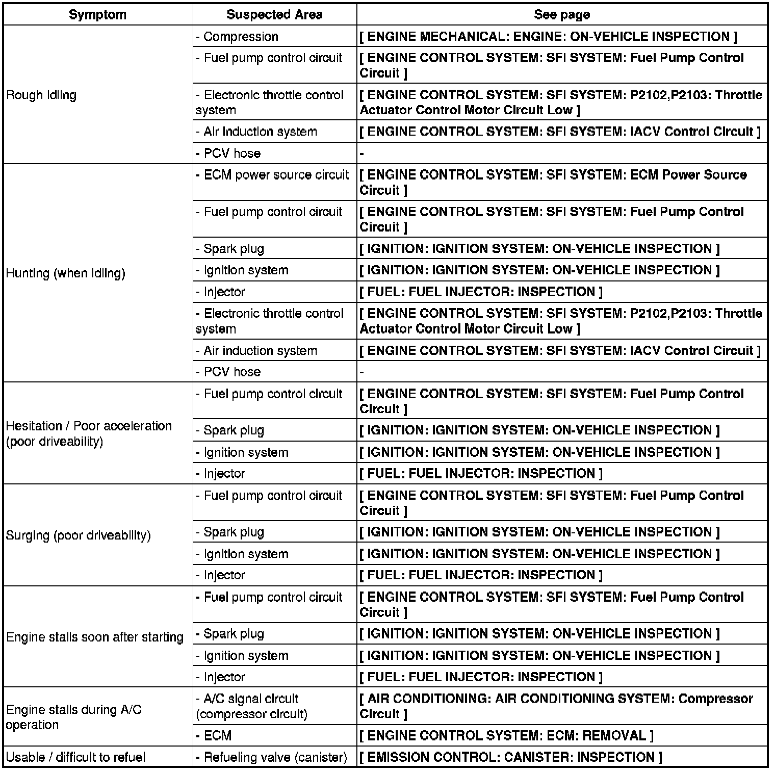3UZ-FE ENGINE CONTROL SYSTEM: SFI SYSTEM: PROBLEM SYMPTOMS TABLE