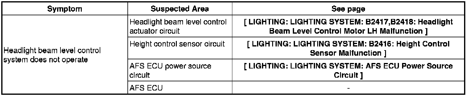 LIGHTING: LIGHTING SYSTEM: PROBLEM SYMPTOMS TABLE