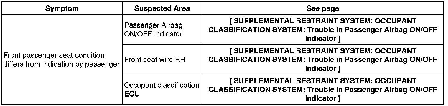 SUPPLEMENTAL RESTRAINT SYSTEM: OCCUPANT CLASSIFICATION SYSTEM: PROBLEM SYMPTOMS TABLE