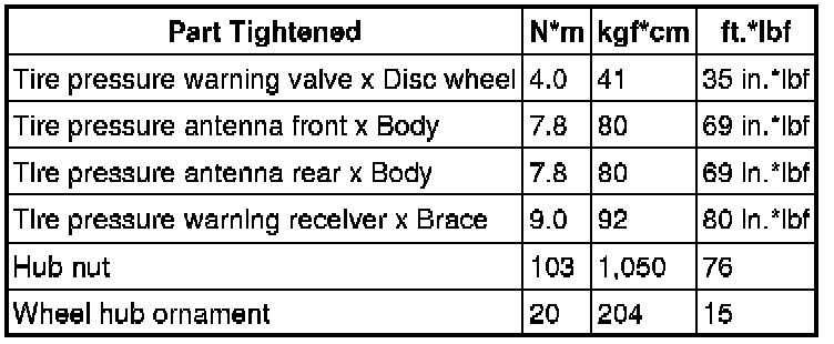 SERVICE SPECIFICATIONS: TIRE AND WHEEL: TORQUE SPECIFICATIONS