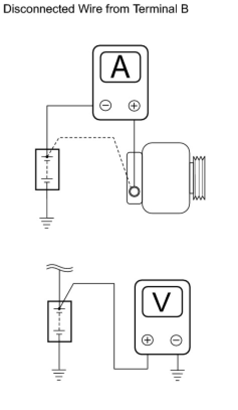 (1) Disconnect the wire from terminal B of the generator and connect it to the ammeter's negative (-) lead.