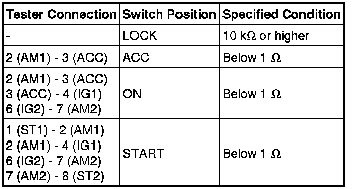 3UZ-FE STARTING: IGNITION SWITCH: INSPECTION