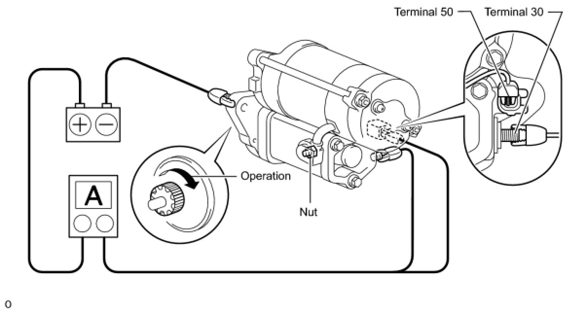 (3) Connect the battery and ammeter to the starter as shown in the illustration.