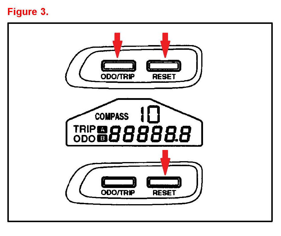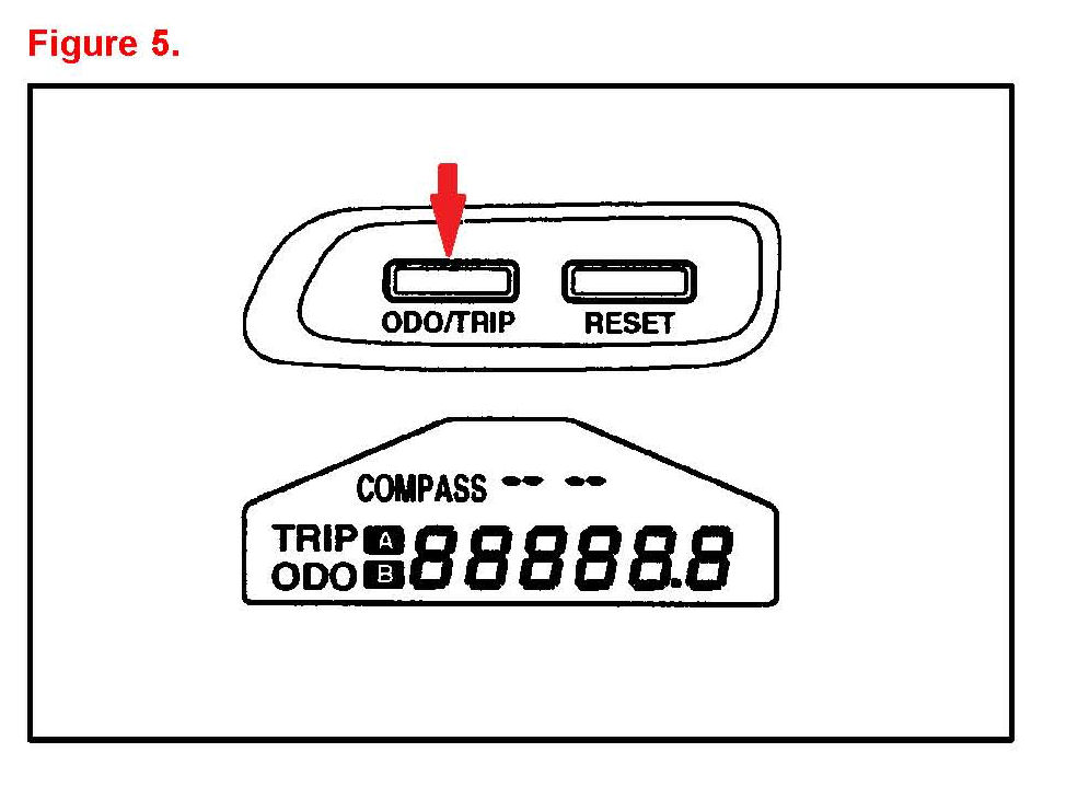 3. Start the engine and push the "ODO/TRIP" button until "- -" blinks on the compass display.