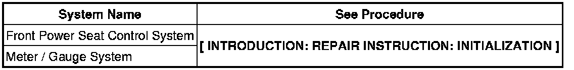 When disconnecting the cable from the negative (-) battery terminal, initialize the following system(s) after the cable is reconnected.