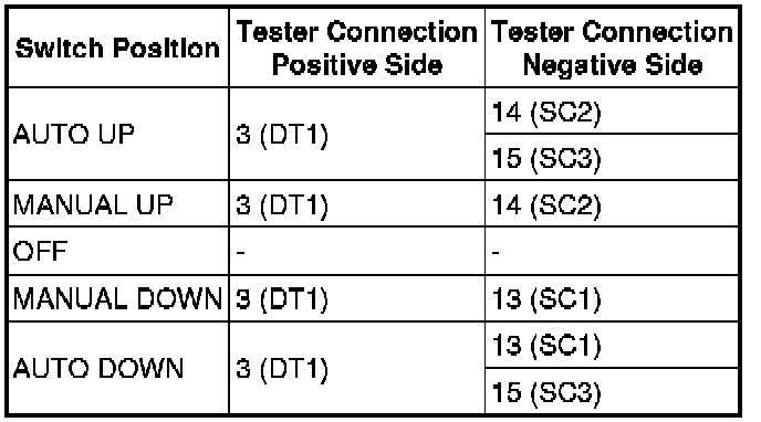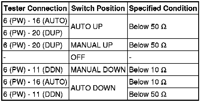 WINDSHIELD / WINDOWGLASS: POWER WINDOW MASTER SWITCH: INSPECTION