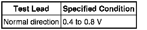 * Connect the tester's leads as shown in the table below. If the leads are not connected correctly, the readings will not be accurate. Connect the tester's positive (+) lead to the diode's positive (+) side, and the negative (-) lead to the diode's negative (-) side.