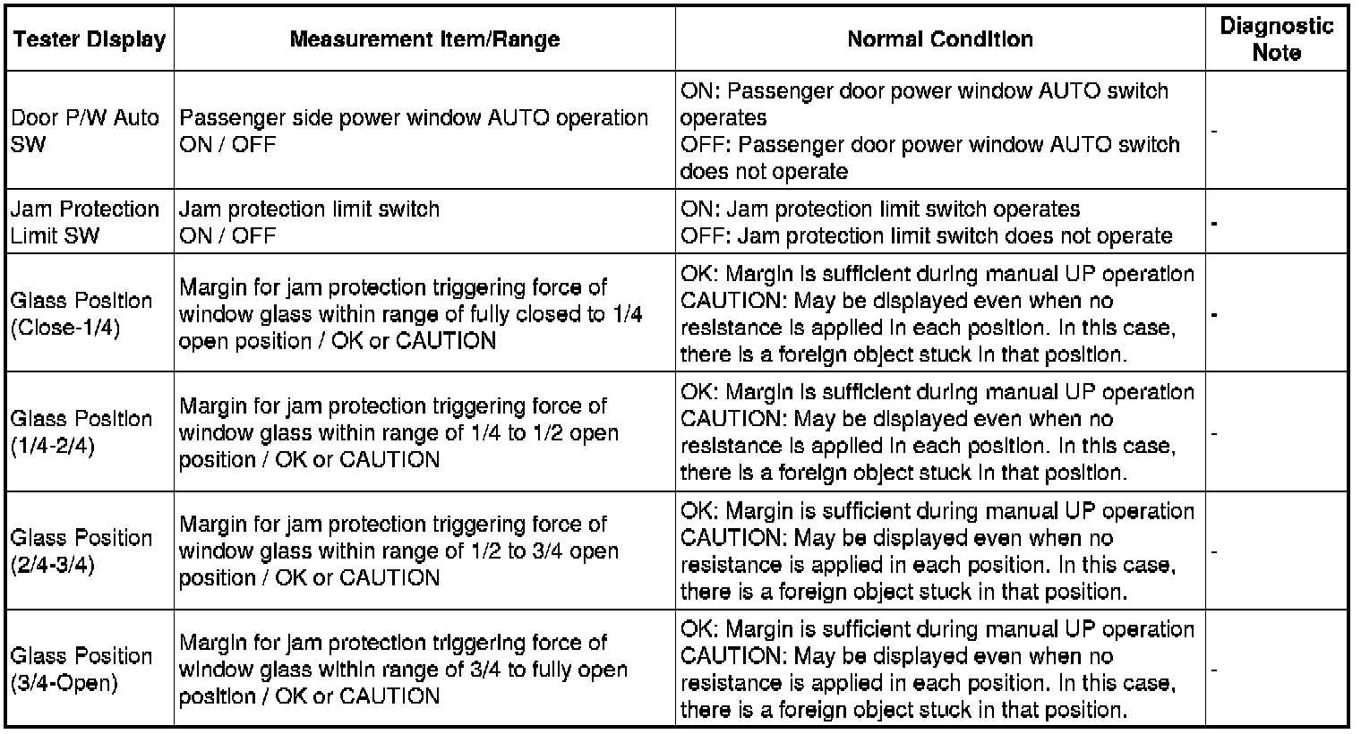 WINDSHIELD / WINDOWGLASS: POWER WINDOW CONTROL SYSTEM: DATA LIST / ACTIVE TEST