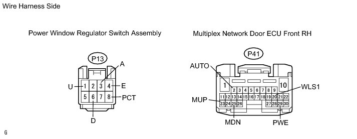 5. CHECK WIRE HARNESS (POWER WINDOW SWITCH - DOOR ECU FRONT RH)
