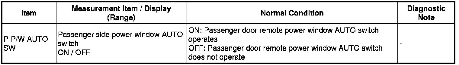 When the ignition switch is ON and the window lock switch is set to UNLOCK, the power window regulator master switch sends remote signals to the multiplex network door ECU front LH (driver door ECU), and the remote signals are then passed to the multiplex network door ECU front RH (passenger door ECU). The multiplex network door ECU front RH then activates the appropriate power window regulator motor.