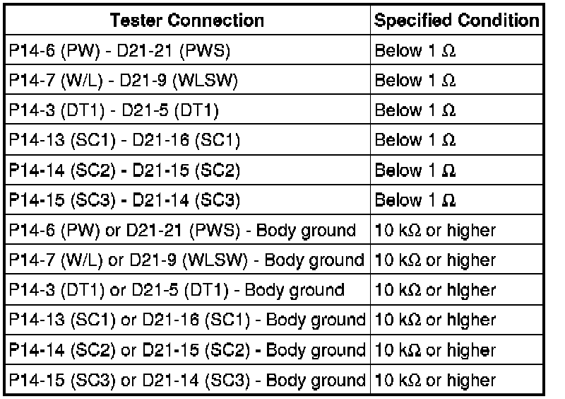 (b) Disconnect the D21 ECU connector.