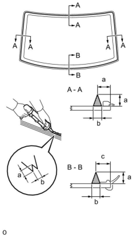 (2) Lightly press the front surface of the glass to ensure that it is securely fit to the vehicle body.