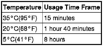 After cutting off the tip, use all adhesive within the time written in the table below.