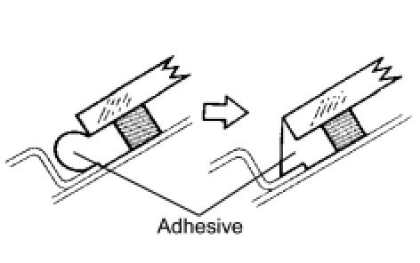 (1) On the contact surface of the vehicle body, use a knife to cut away excess adhesive as shown in the illustration.
