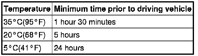 Do not drive the vehicle for the amount of time written in the table below.