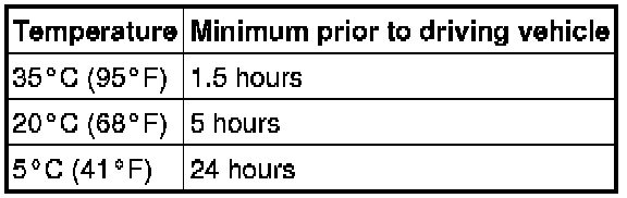 Do not drive the vehicle for the amount of time written in the table below.