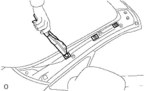 * Do not have any space between the moulding outside and body panel. Firmly hold together the 2 items while installing the rivet.