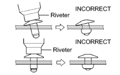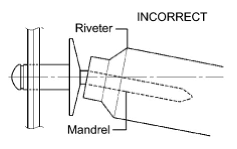 * Do not pry the rivet with the riveter, as this will cause damage to the riveter and mandrel.