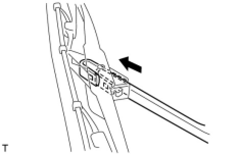 (b) Install the wiper rubber to the claw of the wiper blade in the direction indicated by the arrow in the illustration.